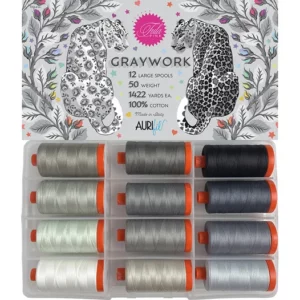• Coffret de 12 grandes bobines Graywork par Tula Pink / Aurifil TP50GW12