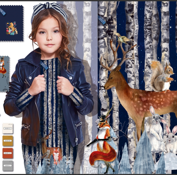 Panneau Stenzo French Terry LES ANIMAUX DE LA FORÊT EN HIVER :