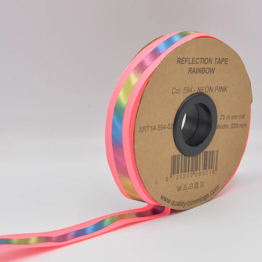 Petite mercerie : Ruban Réfléchissant arc-en-ciel neon pink-20 mm