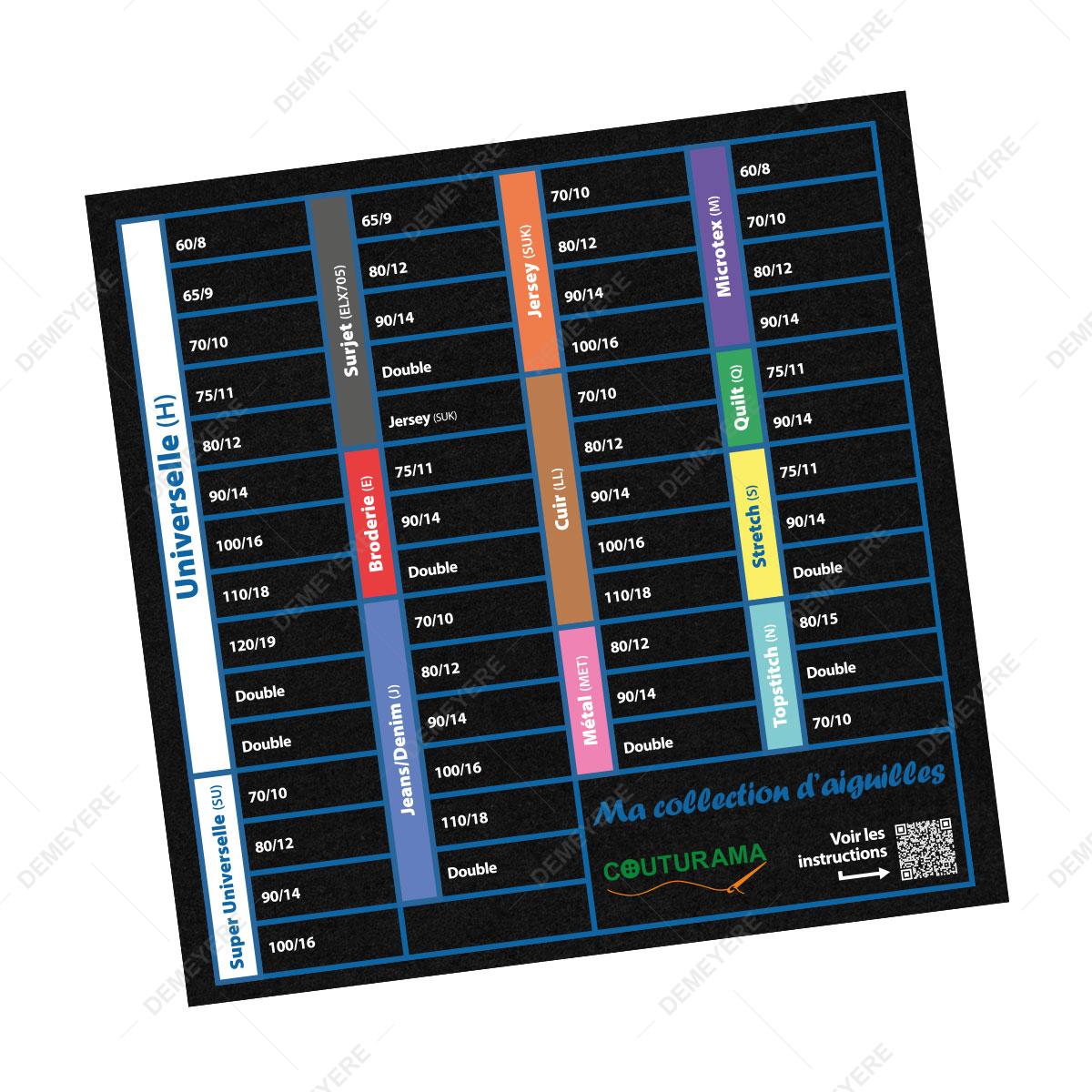 Découvrez le tapis « Ma collection d’aiguilles » de COUTURAMA, l’accessoire indispensable pour toutes celles et ceux qui souhaitent organiser facilement leurs aiguilles de couture. Conçu avec des cellules aux couleurs vives, il permet d’identifier en un coup d’œil les types et les tailles d’aiguilles domestiques, afin de garder une trace précise de celles que vous avez déjà utilisées… jusqu’à votre prochain projet créatif.