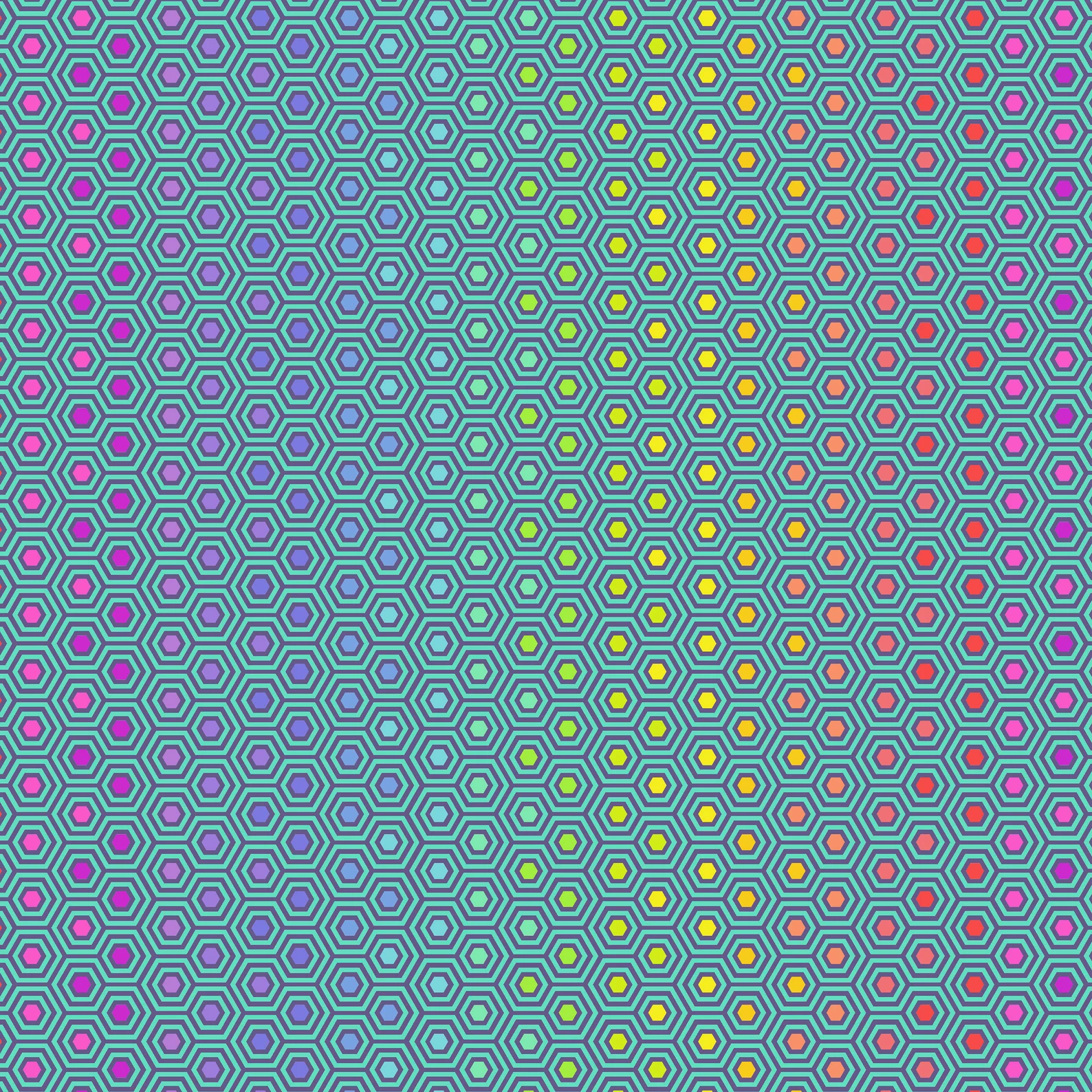 Tissu True Colors Hexy-Rainbow de Tula Pink : PWTP151.Peacock